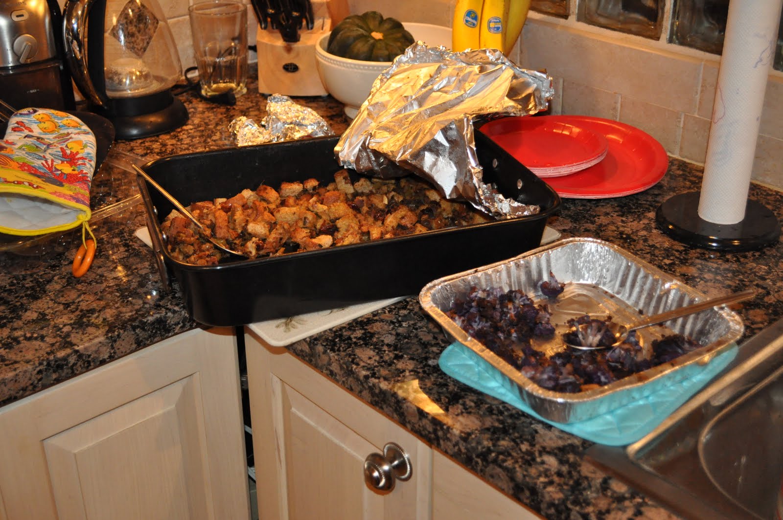 My plate!! Look at how colorful it is! carrots, green beans, butternut squash, cauliflower and gravy, brussel sprouts with green apples, cranberry sauce, cornbread muffin, sweet potatoes,and stuffing!! Better believe I devoured this and went back for 2nds!